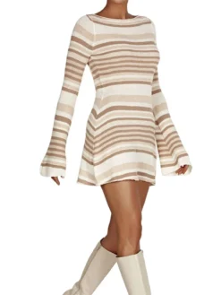 Women’s Fall Mini Dress Long Sleeve Open Back Solid Color Knit Dress Sexy Casual Sweater Dresses