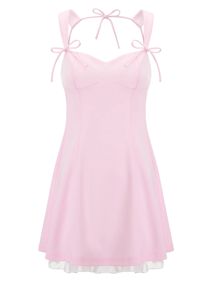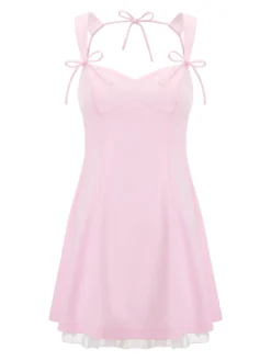 Women’s Summer Corset Mini Dress Fashion Sleeveless Bow Tie Strap Solid Color Tank Dress for Party Elegant Casual Sundress